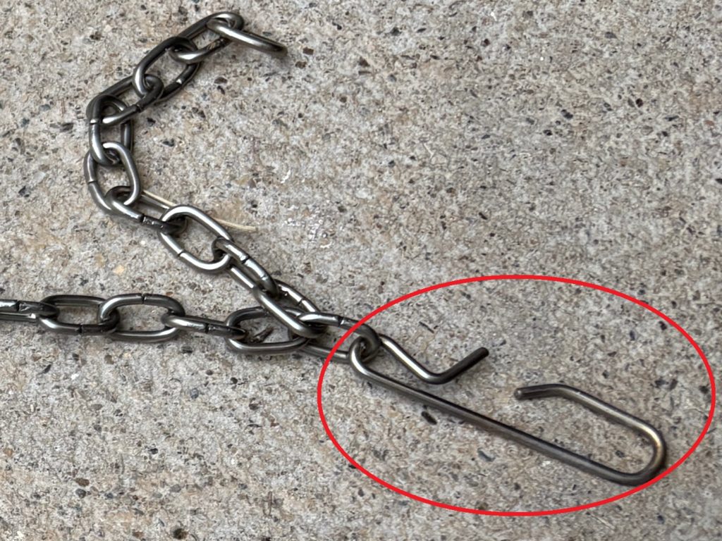 ゴムが劣化して切れて、チェーンの留め具が外れてしまったようでした。